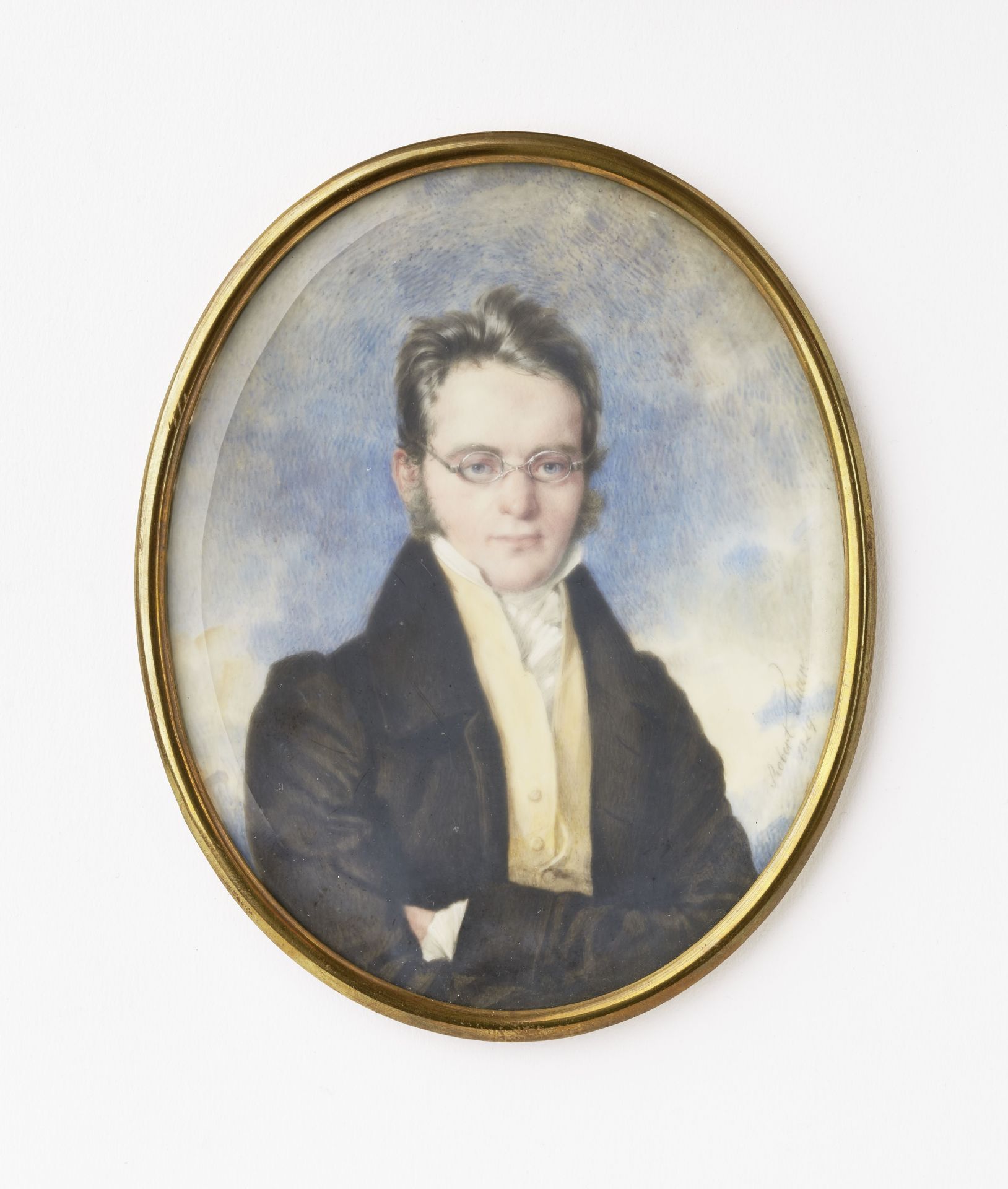 2 Robert Theer, Porträt des Komponisten Franz Schubert, Wasserfarben auf Elfenbein, 1829