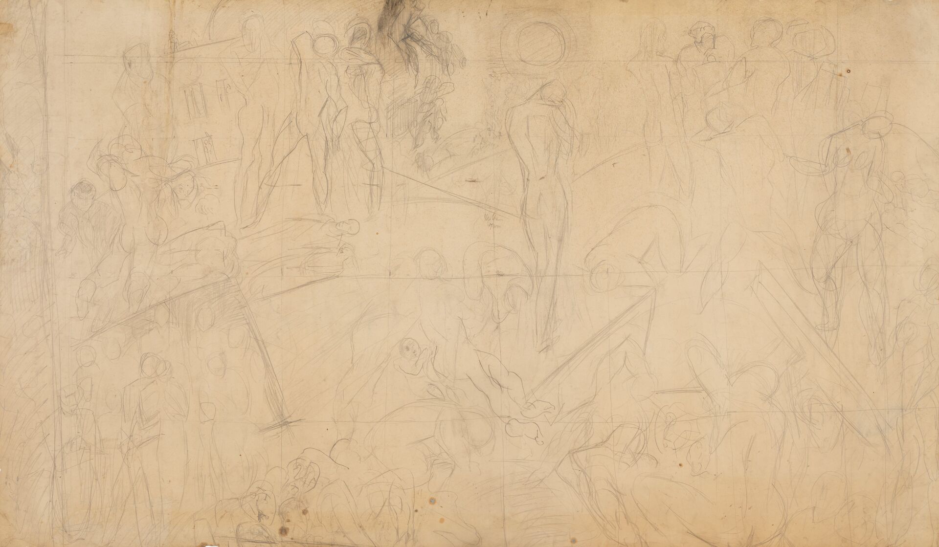 Abbildung 1: Max Beckmann, Große Entwurfszeichnung zu Auferstehung, 1915/16, Bleistift auf Papier, 87 x 147,7 cm.