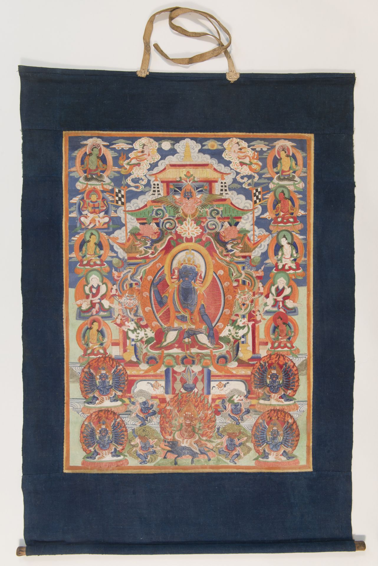 Thangkas sind tibetische Malereien, deren älteste noch erhaltene Exemplare aus dem 11. Jh. stammen. Thangkas werden meist auf Baumwollstoff ausgeführt und sind seit dem 16. Jh. auch zunehmend von Seidenbrokat eingerahmt. Sie gehen auf südasiatische Vorbilder, insbesondere aber auf die Malerei Nepals und Ostindiens, zurück. Neben den Statuen der Buddhas und Gottheiten stellen sie die wichtigsten Objekte der Verehrung in der tibetischen Kultur dar. Unter den Künsten wird der Malerei die höchste Wertschätzung entgegengebracht. Da die Thangkas bereits ihrem Namen nach dazu gedacht sind aufgerollt und transportiert zu werden (thangka bedeutet wörtlich „etwas, das aufgerollt wird“), werden sie vielfältig eingesetzt, zumeist als Verehrungsobjekte bei Ritualen, als Meditationshilfen oder auch zur Belehrung der Gläubigen durch Mönche. Eine Darstellung des tibetischen Buddhismus ohne Thangka-Malereien würde somit nur ein unvollständiges Bild abliefern.