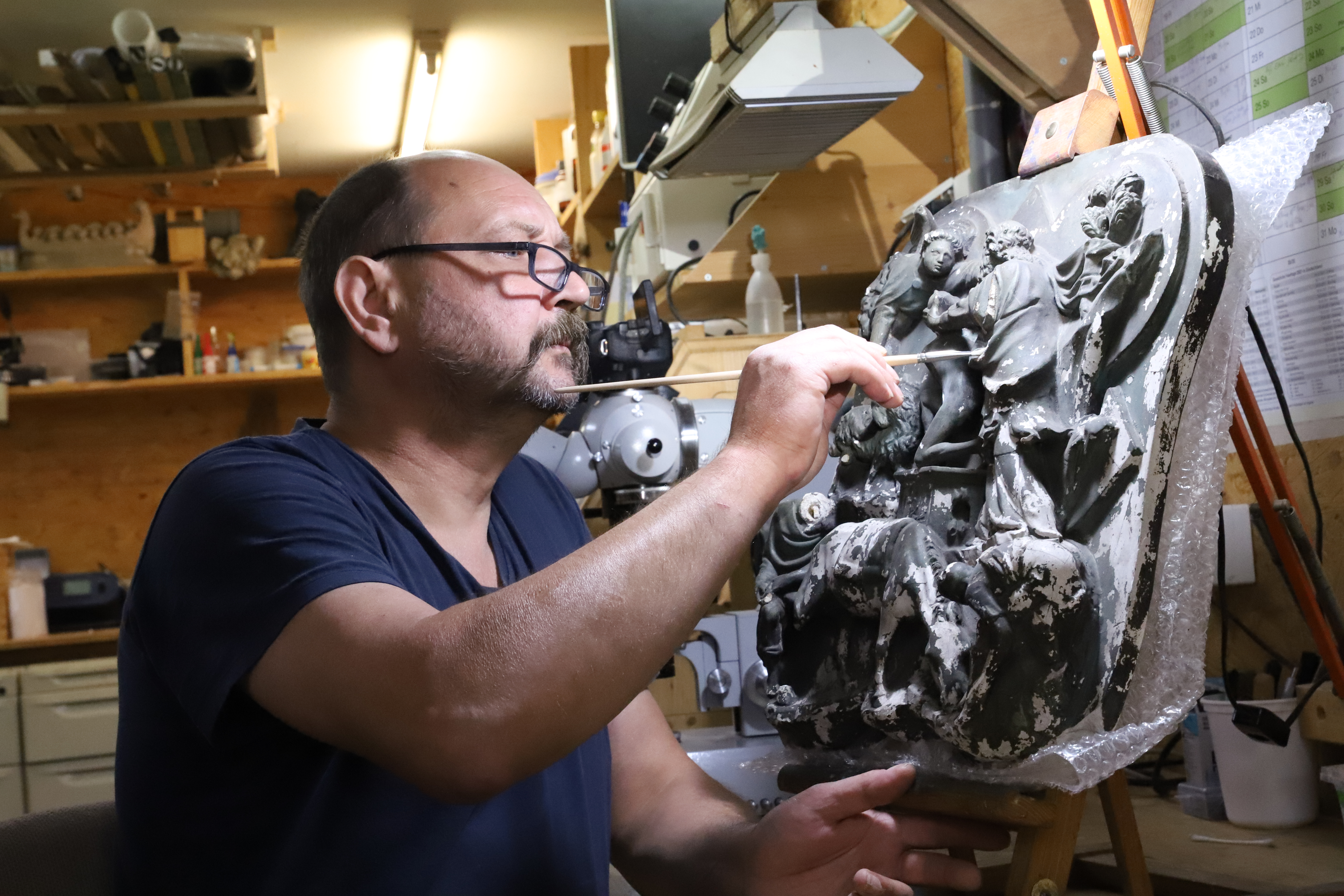 6 Der freiberufliche Restaurator Waldemar Muskalla an der Arbeit am Abguss nach Brunelleschi. © Restaurierungswerkstatt Waldemar Muskalla, Foto: Waldemar Muskalla