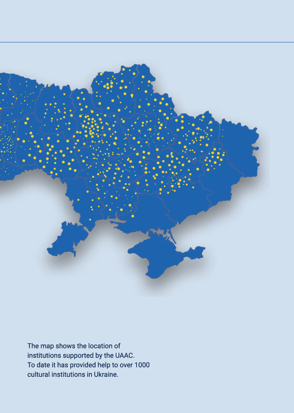 Die neue Broschüre des Ukraine Art Aid Centers informiert über das Projekt und über die bereits ermöglichten Hilfen für Kultureinrichtungen in der Ukraine durch den Verein. Nach massiver Zerstörung durch russische Raketen im August 2023 konnte beispielsweise das Shevchenko Musik und Drama Theater in Chernihiv im Februar 2024 wiedereröffnen, da mithilfe der UAAC und weiteren internationalen Förderern die Reparaturmaßnahmen schnell aufgenommen und beendet werden konnten.