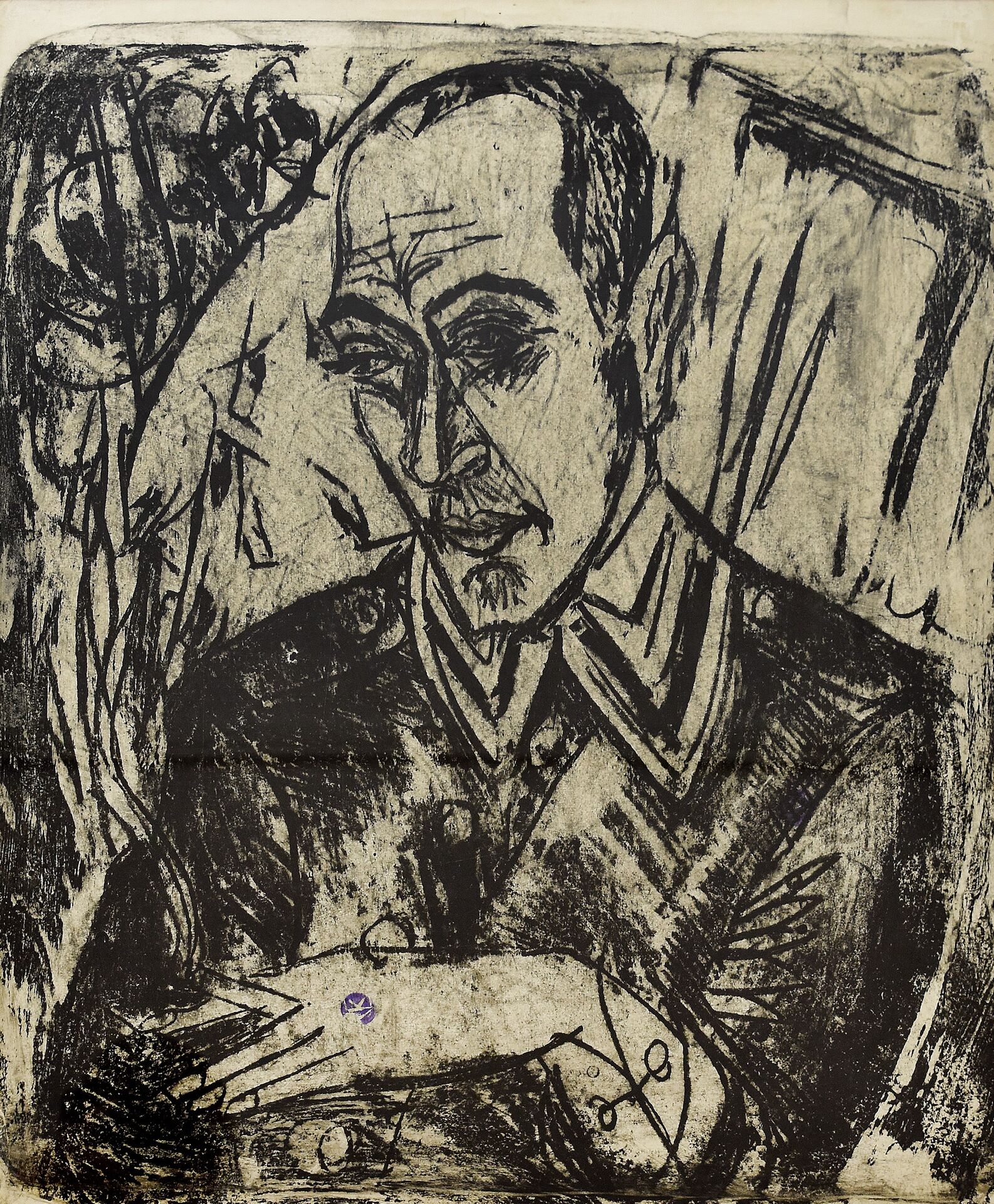 Abbildung 3 (links unten): Ernst Ludwig Kirchner, Porträt Hugo Biallowons, Verso Kopf Professor Botho Graef Lithographie auf satiniertem Velin, 59,0 x 50,4 cm, 1915.