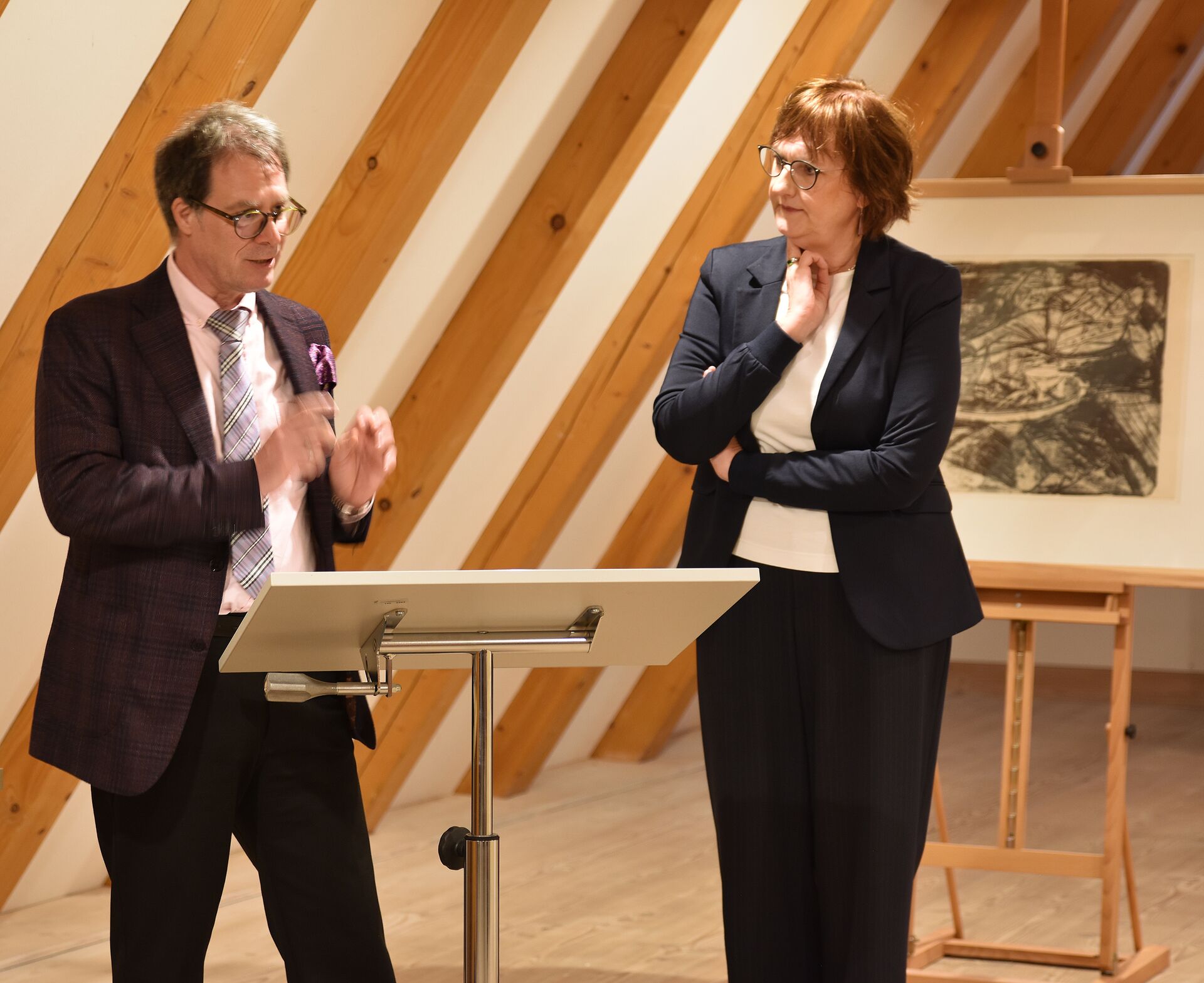 Abbildung 1: Dr. Martin Hoernes, Ernst von Siemens Kunststiftung, und Dr. Birgit Sander, Rudolf-August Oetker-Stiftung, bei der Übergabe am 15.4.2026